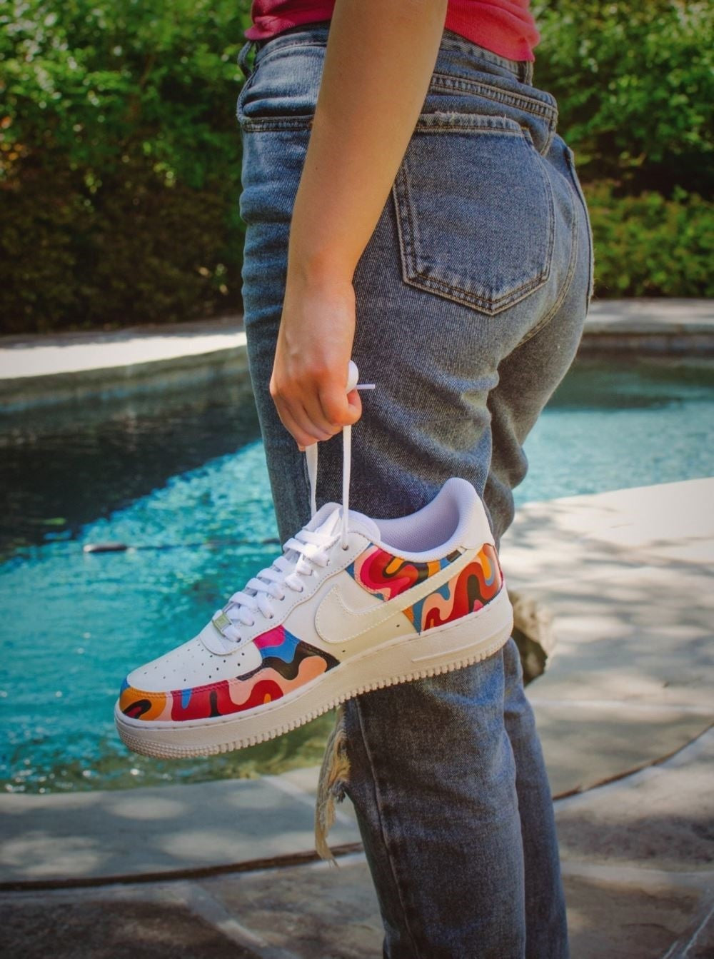 Be bold and vibrant with the Brightly Colored Custom Air Force 1. Featuring a unique, brightly colored design, this shoe makes a statement wherever you go. The custom design is comfortable and provides support for long-lasting wear. Step out in style with the Brightly Colored Custom Air Force 1.
