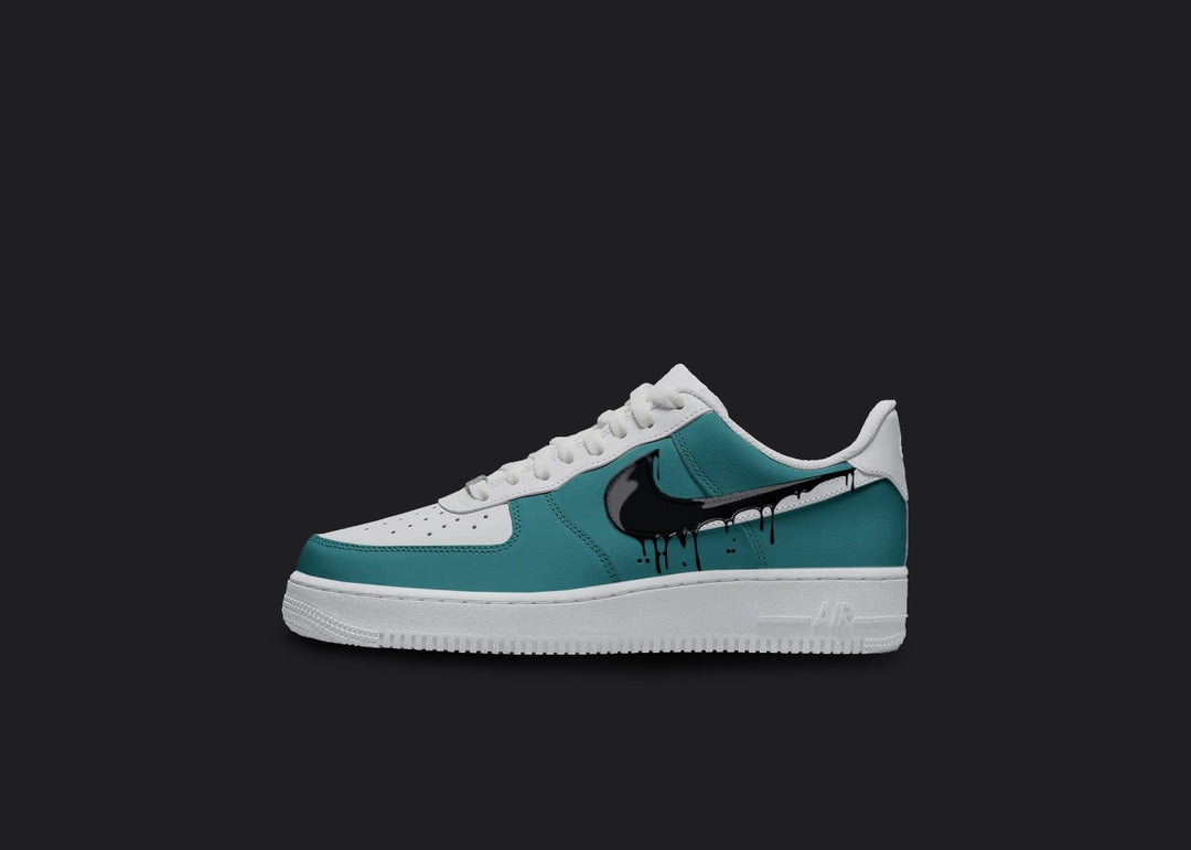 Add some pizzazz to your daily wardrobe with the Green Black Drip Custom Air Force 1. Featuring a sleek green and black design, these customizable kicks are sure to turn heads wherever you go. Make a statement with an iconic mix of fashion and function.