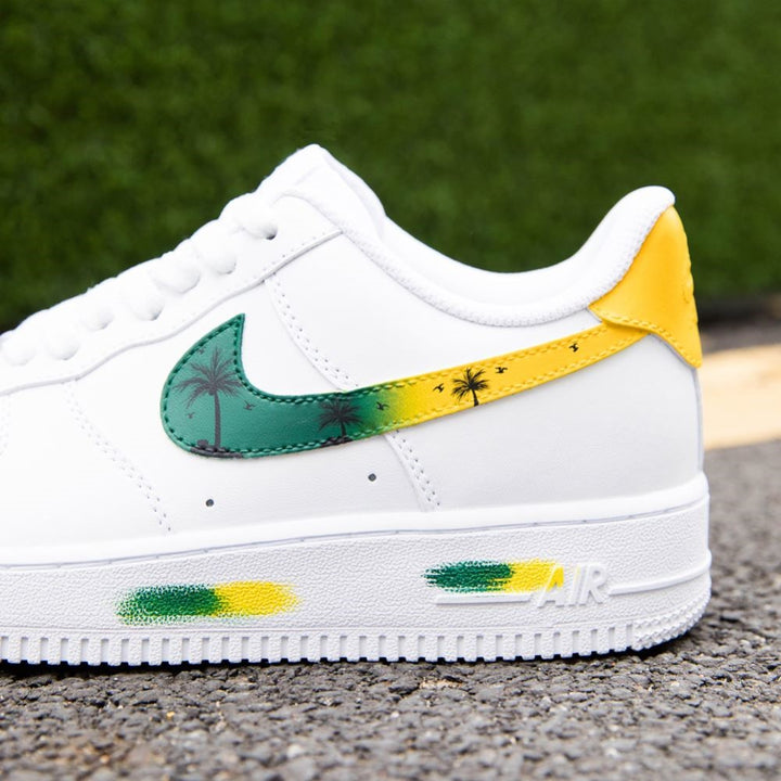 Be bold and stand out in your custom Palm Tree Shadow Air Force 1s! Defy expectations and add a cool, unique flair to your outfit with these stylish shoes, featuring a bright palm tree shadow print. Take a risk and make a statement! ?